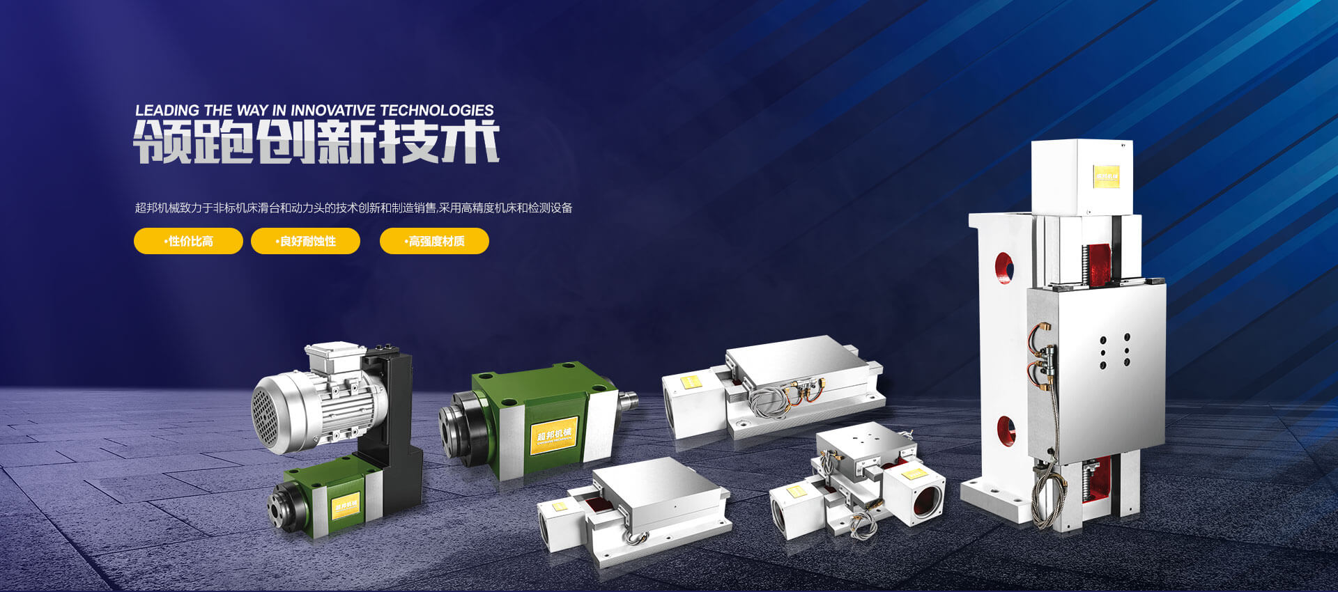 臺(tái)州市超邦機(jī)械設(shè)備制造有限公司是一家專業(yè)設(shè)計(jì)制造組合機(jī)床和數(shù)控滑臺(tái)的廠家。目前的主要產(chǎn)品有數(shù)控滑臺(tái)、機(jī)械滑臺(tái)、數(shù)控銑頭等,品種多,規(guī)格全,同時(shí)還為客戶設(shè)計(jì)各種非標(biāo)的滑臺(tái)和銑頭。主打產(chǎn)品是數(shù)控滑臺(tái),導(dǎo)軌表面經(jīng)過(guò)高頻淬火,表面硬度可達(dá)到HRC52度以上。